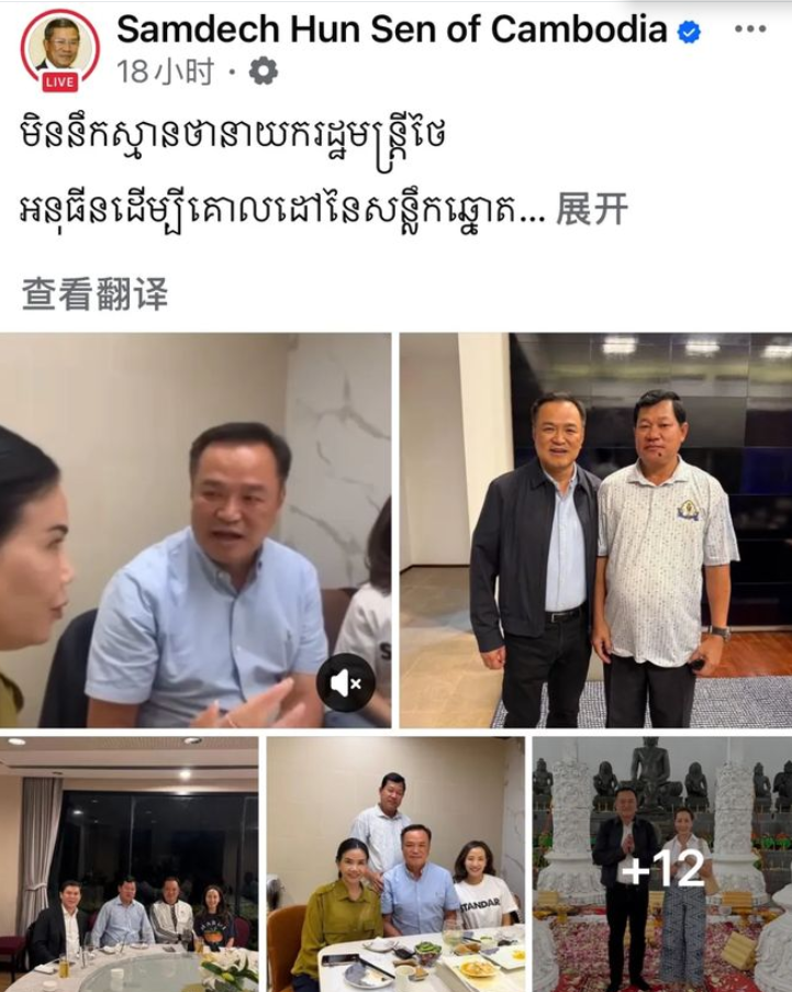 军事上处于守势时,柬埔寨前首相洪森再次展现其政事手腕。冲突升级后,他在社交媒体晒出与泰国现任总理阿努廷的系列“老像片”:两东谈主亲一又聚餐、阿努廷配偶在柬寺庙道喜等。